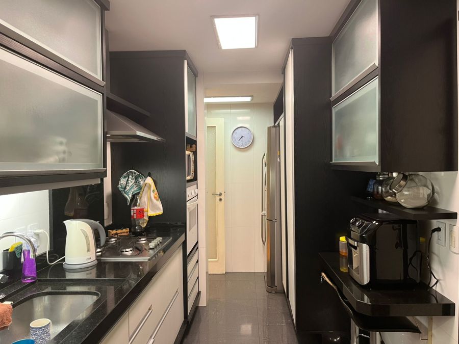 A cozinha, prática e funcional, complementa o espaço social, enquanto a área de serviço conta com dependência de empregada e banheiro, otimizando o seu dia a dia. E para os seus veículos, 02 vagas de garagem com box garantem segurança e praticidade.