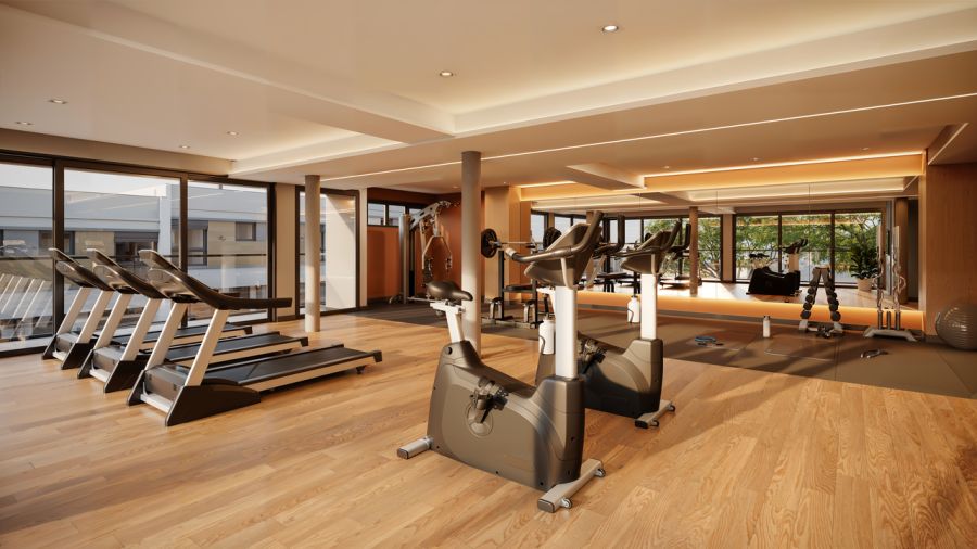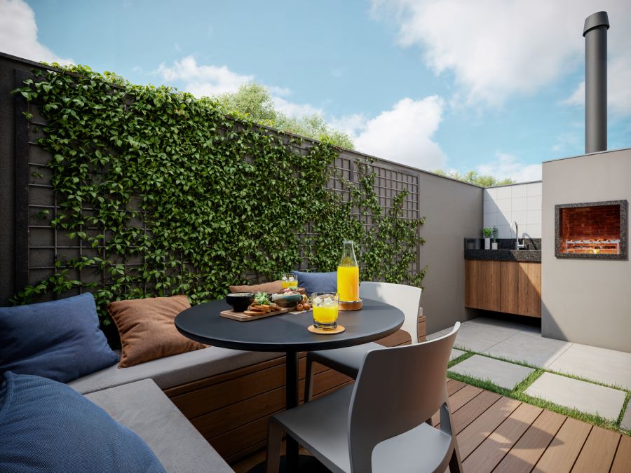 Pórtico de acesso ao condomínio, Guarita, Salão de festas (com churrasqueira, lareira e copa), Sala de jogos, Brinquedoteca, Salão gourmet, Academia, Coworking, Depósitos, Refeitório (de serviço), Vestiário (de serviço), Depósito de lixo, Piscina adulto, Piscina infantil, Espaço fogo de chão, Mini quadra (recreativa), Quadra de beach tennis, Quiosque gourmet, Playground, Pet place, Bicicletário, Estar externo, Sauna, Sala de massagem, Espaço para micromarket.