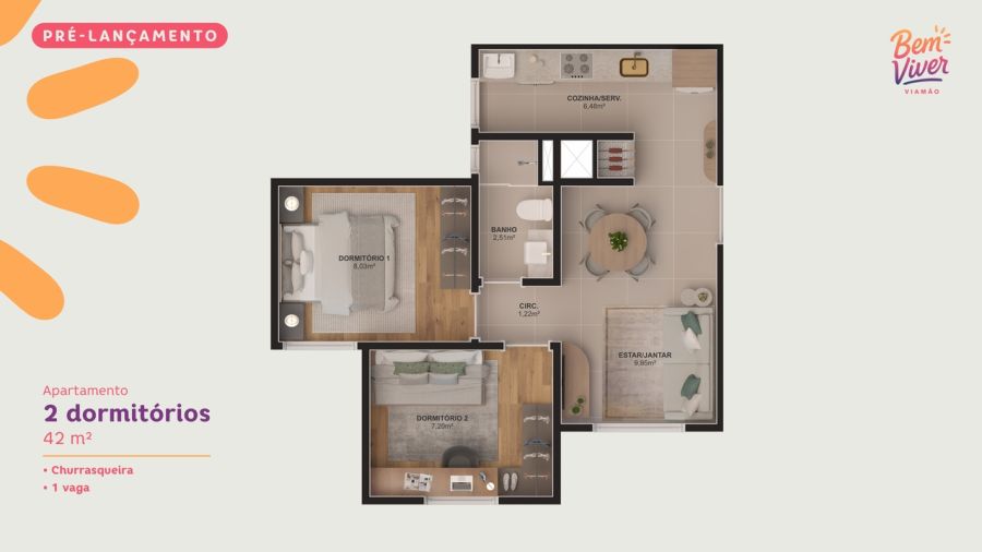 - Área Privativa: 42 m²