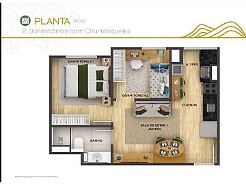 Planta com Varanda e Churrasqueira com 36 m2