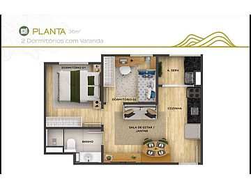 Planta com Varanda com 36 m2